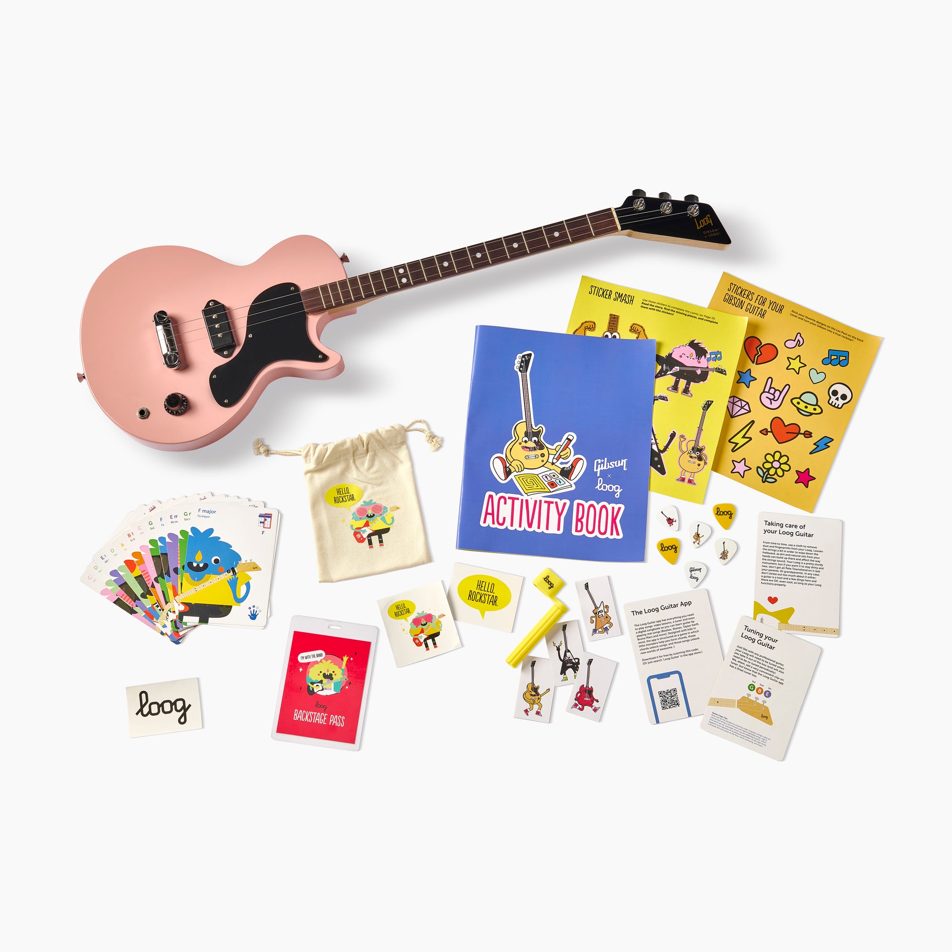 LoogとGibsonのコラボレーションから生まれたこのギターは、伝説的なシルエットに敬意を表しつつ、楽しく簡単に演奏を学べるようにデザインされています。さあ、ロックスターの誕生だ!